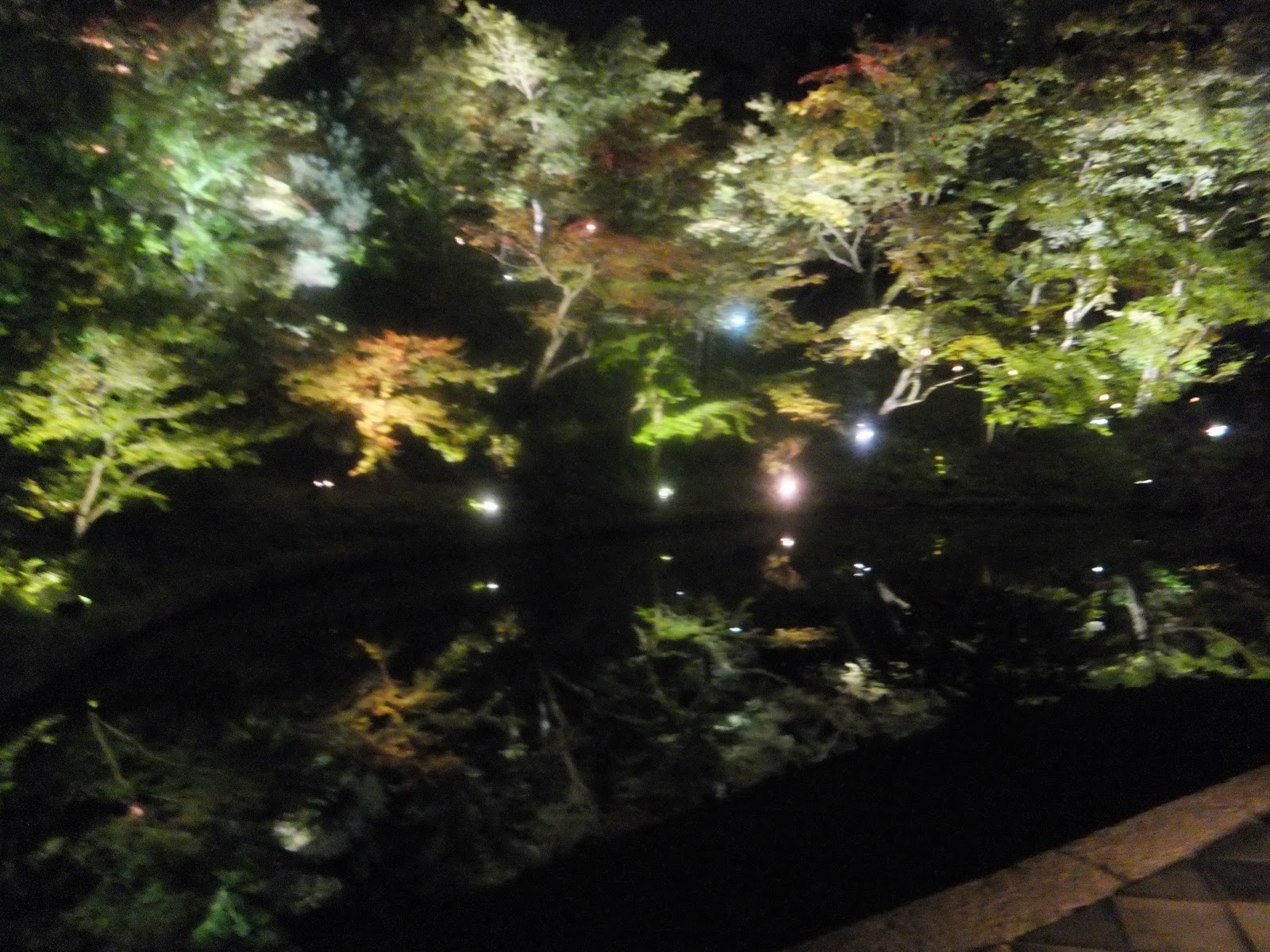 池の水面が鏡のようになり、周りの木々や夜空が映し出されて、それはそれは神秘的で美しく水面に吸い込まれてしまいそうでした☆